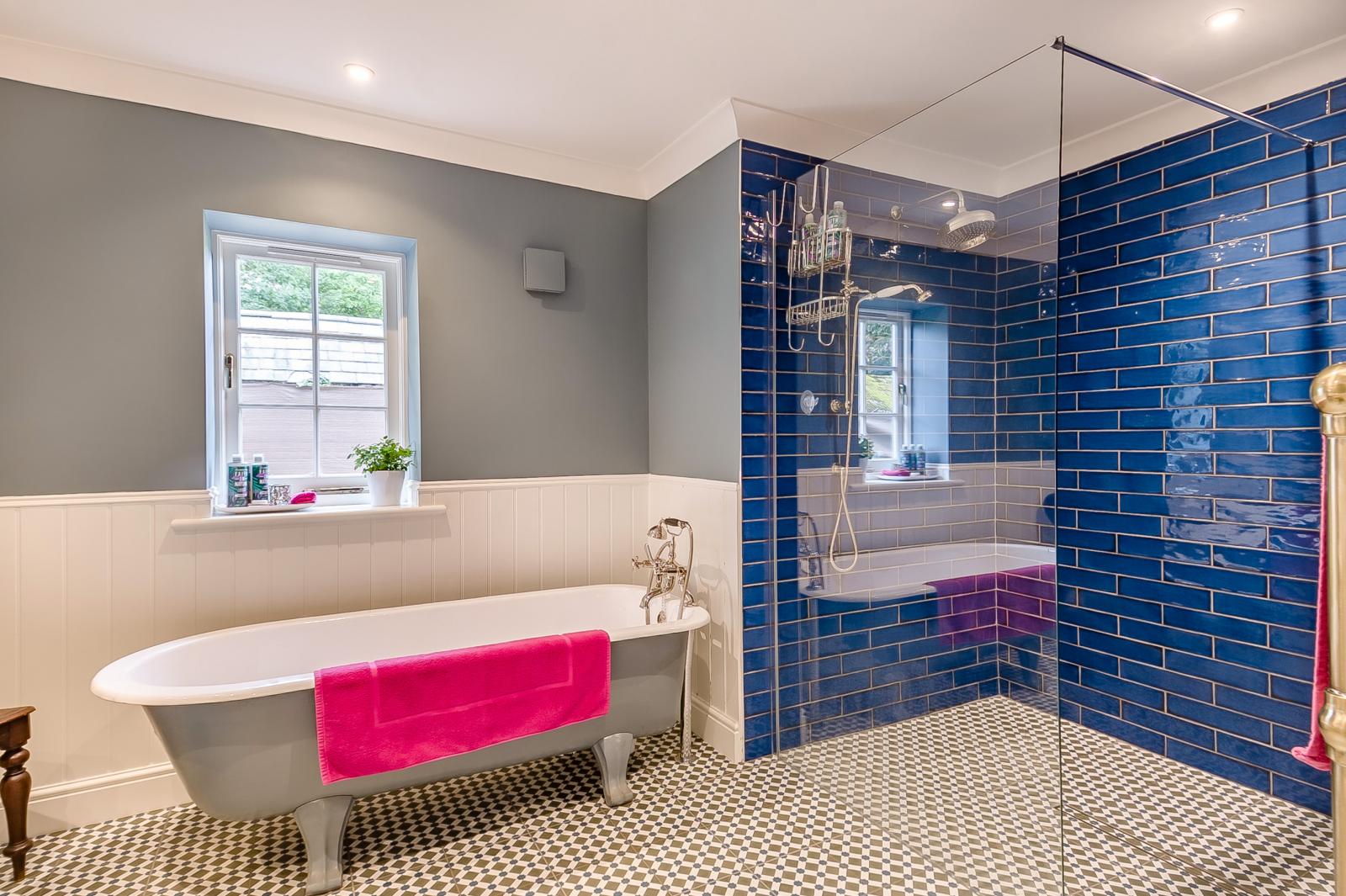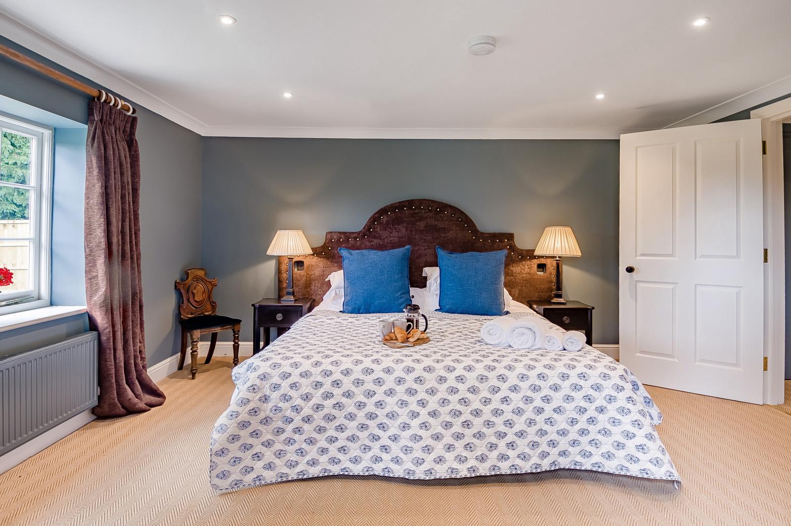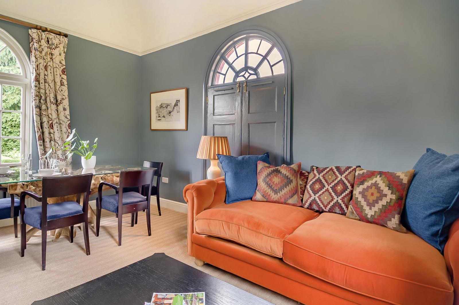 Parking at the gatehouse is configured to enable easy wheelchair access along paved paths through the private garden, front door and throughout the interior, including the beautiful bathroom with its huge walk-in shower. Inside you’ll encounter a stylish kitchen and a spacious high-domed open-plan living/dining area with striking lancet windows that bathe the space in natural light or dappled light from the large Moroccan chandelier. Cook dinner in the L-shaped kitchen and enjoy a romantic meal for two at the chic glass dining table. Afterwards, cosy up in the sitting room and catch up on your favourite TV shows or immerse yourself in a good book. At the end of the day, retire in style to the elegant super-king-size bedroom.